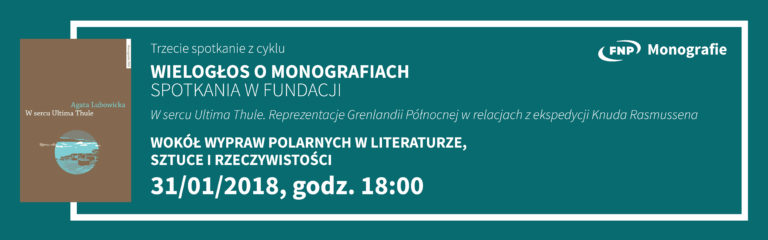 Fundacja na rzecz Nauki Polskiej zaprasza na trzecie spotkanie z cyklu WIELOGŁOS O MONOGRAFIACH ? SPOTKANIA W FUNDACJI wokół książki dr Agaty Lubowickiej pt. ?W sercu Ultima Thule. Reprezentacje Grenlandii Północnej w relacjach z ekspedycji Knuda Rasmussena?.Podczas spotkania dowiemy się więcej o...