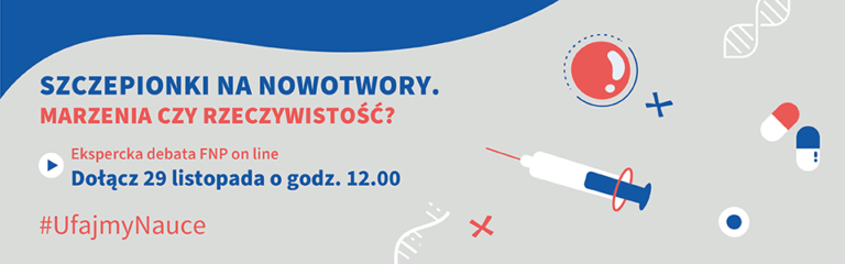 Fundacja na rzecz Nauki Polskiej organizuje już siódmą ekspercką debatę w ramach cyklu ?Ufajmy nauce?. Najbliższe spotkanie pt. ?Szczepionki na nowotwory. Marzenia czy rzeczywistość?? odbędzie się 29 listopada br. o godz. 12.00 i będzie transmitowane online. W dyskusji wezmą udział wybitni...
